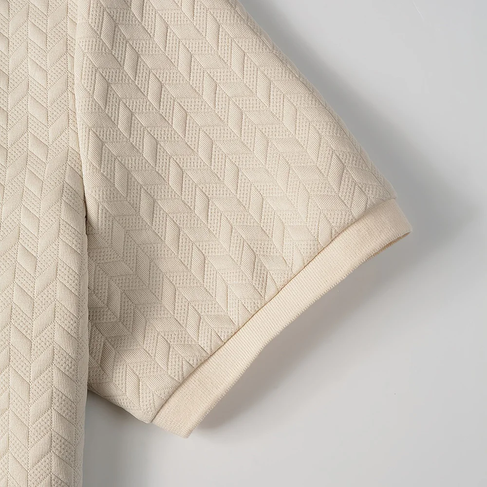 🧥 This tailored polo blends breathable comfort with elevated texture. The chevron knit adds subtle depth, while the neutral beige tone keeps it versatile and clean. Perfect for casual days or dressed-up moments. Quiet luxury, made wearable.